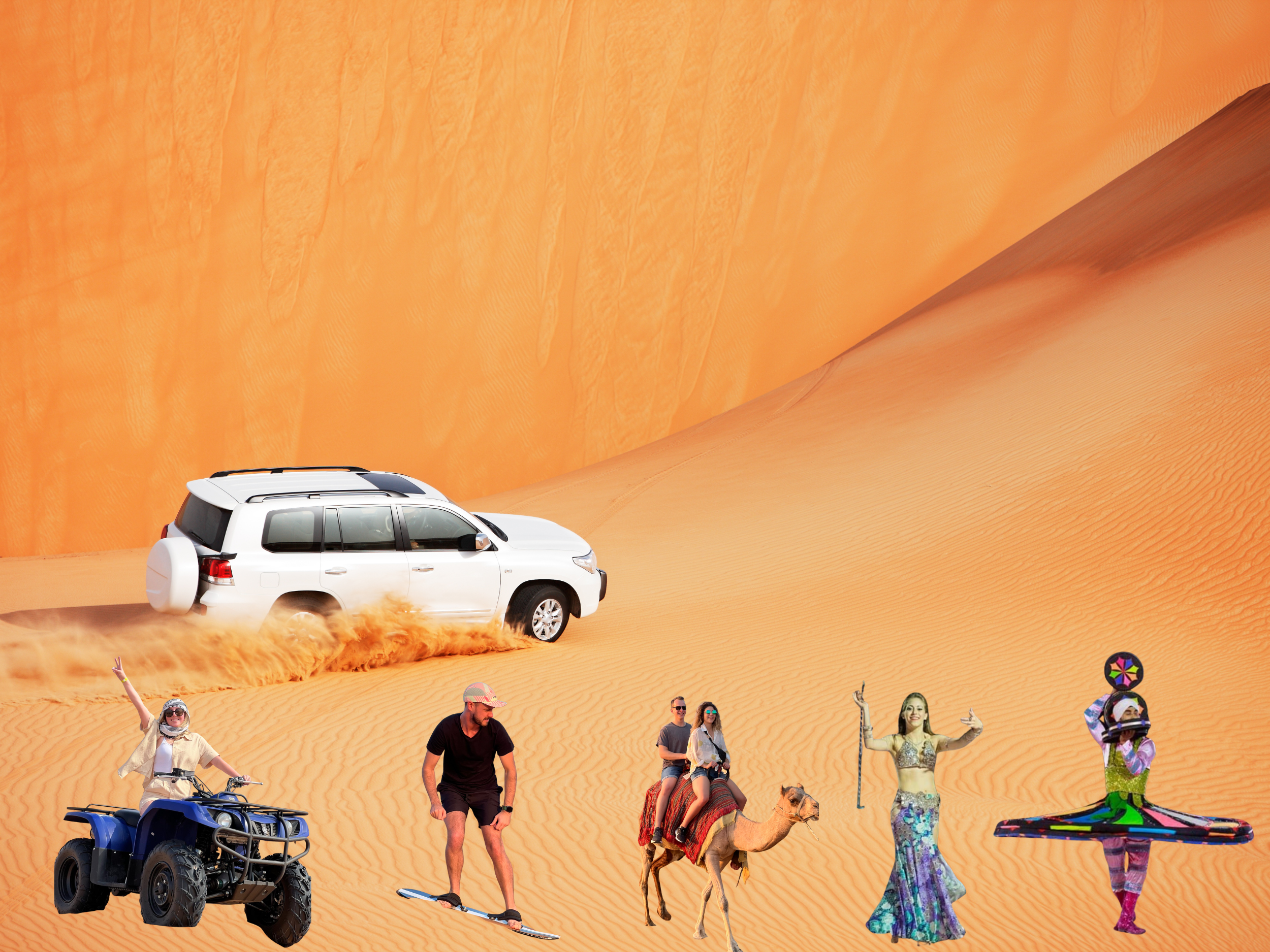 • Dune bashing: Our Dune bashing is a 30-minute 4WD vehicle trip in the desert at different speeds over massive dunes.